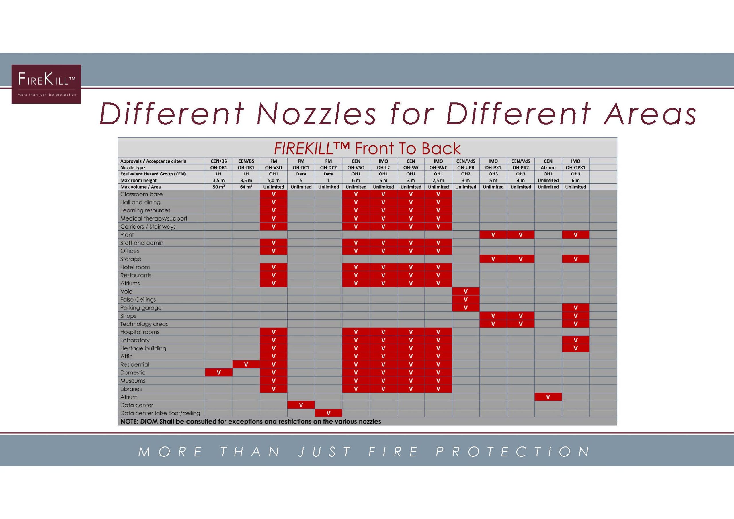 VID Fire-Kill veeudu kustutussüsteem pakub laia valikut sertifitseeritud ja tõestatud toimivusega pihusteid